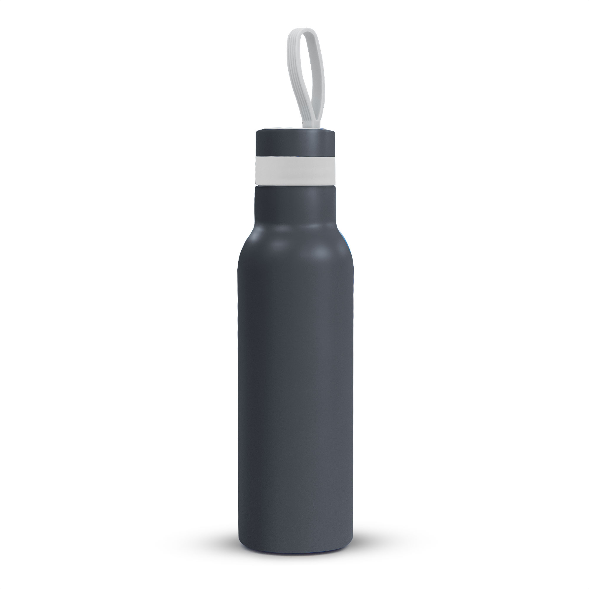 Ø 6 8 x 24 5 cm Capacidad 500 ml Acero inoxidable Botella Vacuum Interior en acero 304 y exterior en acero 201 Acabado satinado mate Detalle de agarre siliconado gris Mantiene hasta 8 hs la temperatura de las bebidas calientes y hasta 12 hs la de las bebidas frías Presentación en caja de regalo Kraft
